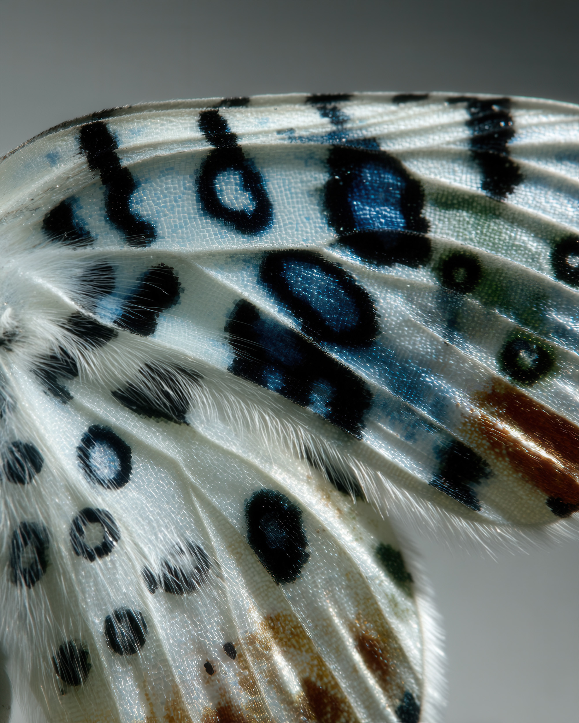 Multidisciplinary project combining textile design, AI-generated content, and digital photography, inspired by Elysia chlorotica, a sea slug capable of photosynthesis after consuming algae. This remarkable natural adaptation inspired the creation of a T-shirt designed as a second skin, printed with sunlight using the cyanotype technique. An image shaped by light, a symbol of silent and sustainable adaptation. Model: Sarah Tanguy, Mua: Jeanne Salord